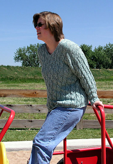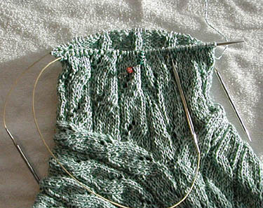 38[42, 46, 50] sts in pattern, k2tog. Join