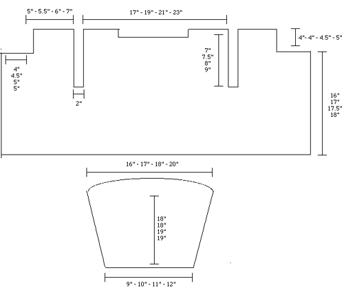 Large = 46" around and 22" long