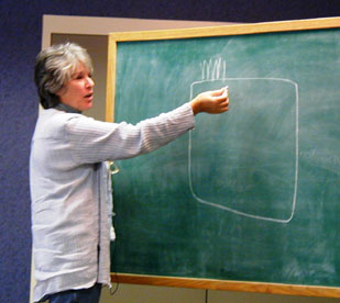 around Meg's kitchen table; the way she talks,