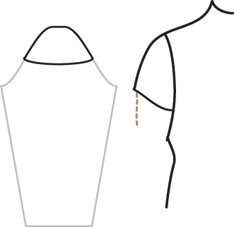 into cap sleeves. The armscye is not shaped
