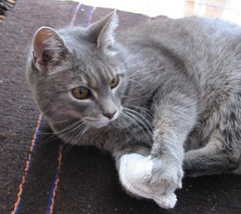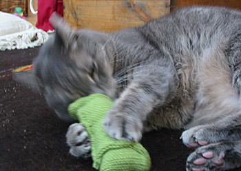 clawing at knitted objects.