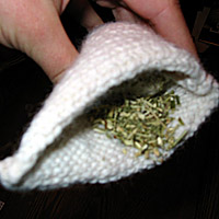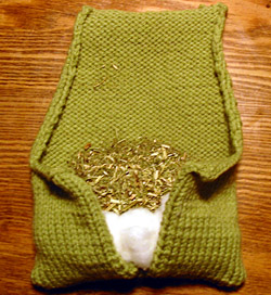Stuff pouch with stuffing and catnip.