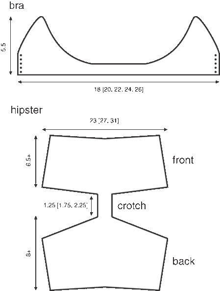 Row 2: P 38[46, 54], pm, p3, pm, p 38[46,