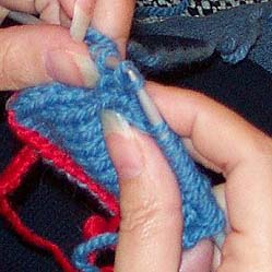 Rows 3 and 4 until 8 of the toe stitches are wrapped