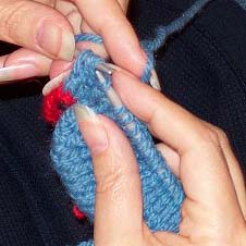 your sock yarn and 2 dpns, knit 1 stitch into the