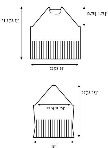 k2, p1] 3 times; k2. Work 7 more rows evenly in
