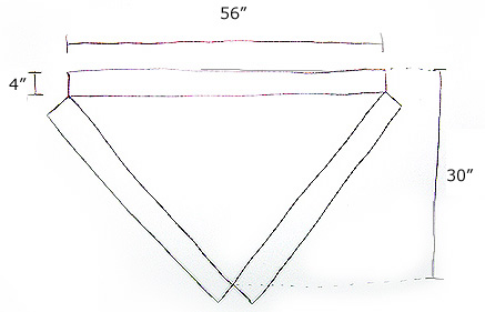 Lower point: Join yarn to one of the outer corners of the bands, chain for 4 inches, work one sc around the yarn holding the top of the tassel together, chain for 4 inches, join with an sc to opposite outer corner.