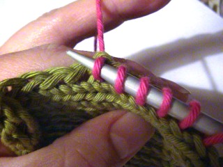 stitch onto the knitting needle before moving