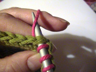 first stitch of the row as if to knit. On