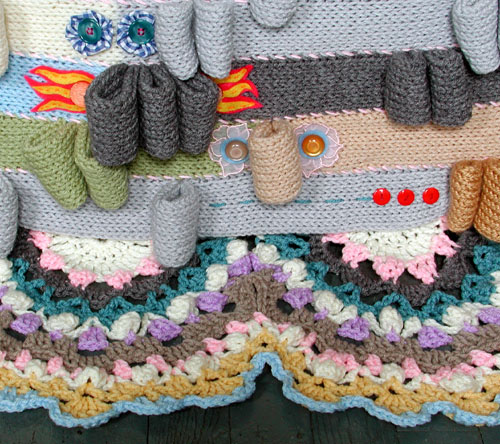 knitted & crocheted acrylic yarn, buttons,