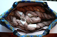 your working ball of yarn inside the bag